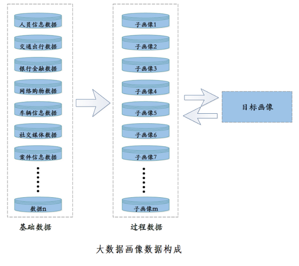 与基础数据不同,过程数据是主观判断或机器加工的产物,是大数据画像过程中的子画像。这里需要特别阐述的一个观点是:就某次应用而言,其得到的大数据目标画像不仅是该次大数据画像过程的结果,同时也应该被存储保留,作为下一次大数据画像应用的原材料。从信息学角度来说,过程数据与原始数据相比存在一定程度的信息损耗,但从数据价值提炼的角度来说,通过某次应用而得到处理加工的过程数据在目标针对性上要明显优于原始数据,对历次大数据画像形成的子画像的再利用不仅可以提高大数据画像应用的效率,还可以提高目标筛选的精准度,降低因数据分散而导致信息遗漏的可能性。