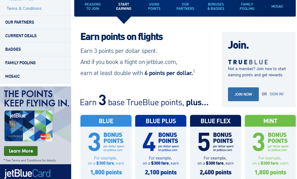 图3 捷蓝航空官网常旅客计划页面部分内容